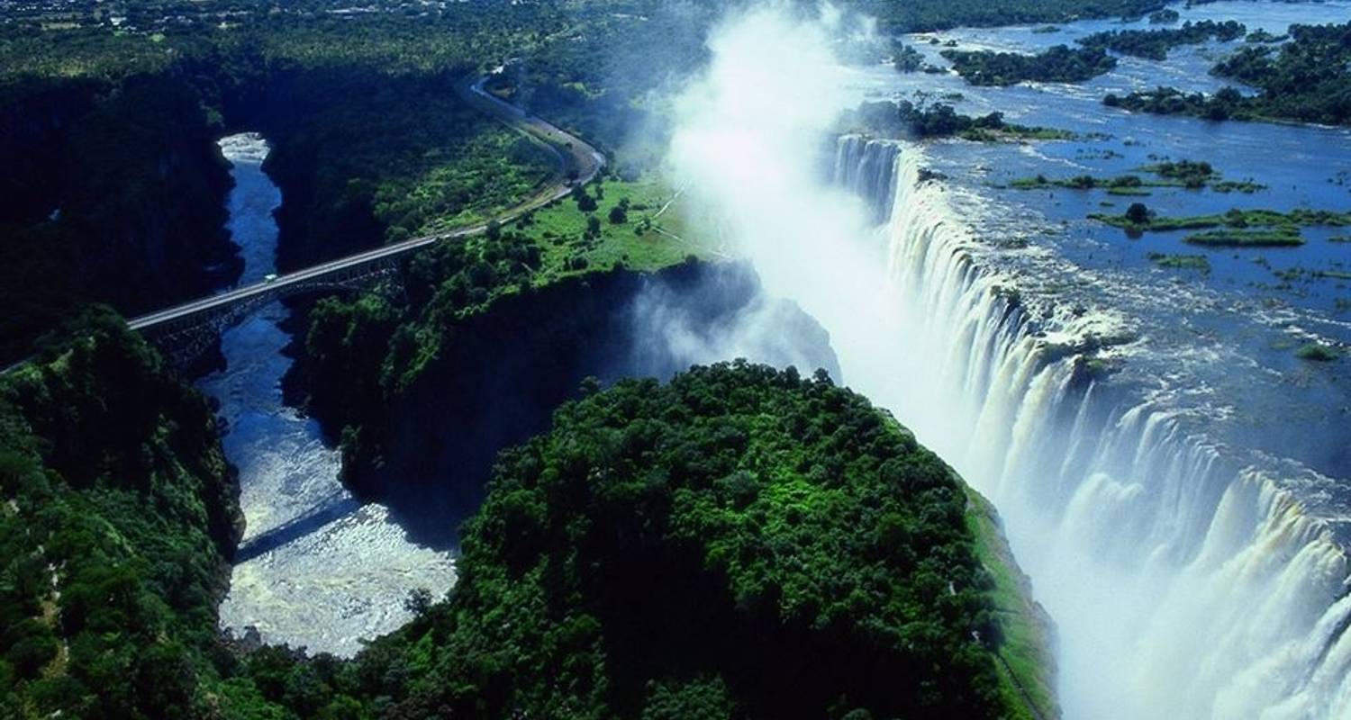 Desayuno. Salida para realizar una visita guiada de las Cataratas Victoria. Conocidas como el "humo que truena", fueron declaradas Patrimonio de la Humanidad en el año 1989. Tienen una anchura de aproximadamente dos kilómetros y miden 108 metros de alto, el doble que las Cataratas del Niágara. Regreso al hotel. Por la tarde, traslado al embarcadero para realizar un crucero por el río Zambeze y disfrutar de la espectacular puesta de sol. A bordo, se servirán bebidas y aperitivos. Regreso al hotel. Alojamiento.